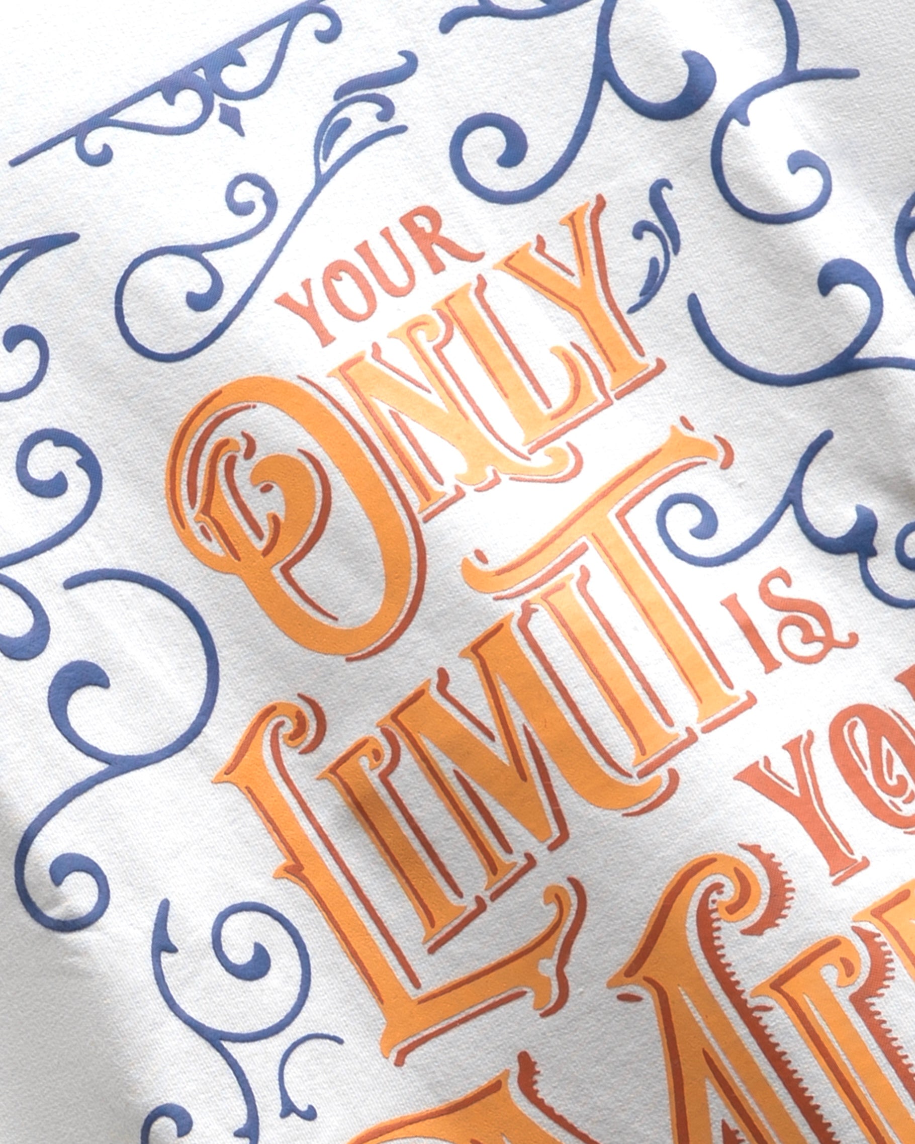 THE LIMITLESS MIND TEE IS DESIGNED FOR THINKERS, CREATORS, AND BUILDERS WHO REFUSE TO STAY CONFINED BY DOUBT. FEATURING AN ORNATE VINTAGE-INSPIRED TYPOGRAPHY PRINT ON A WHITE BASE, THIS PIECE BLENDS ARTISTIC ELEGANCE WITH POWERFUL MEANING
