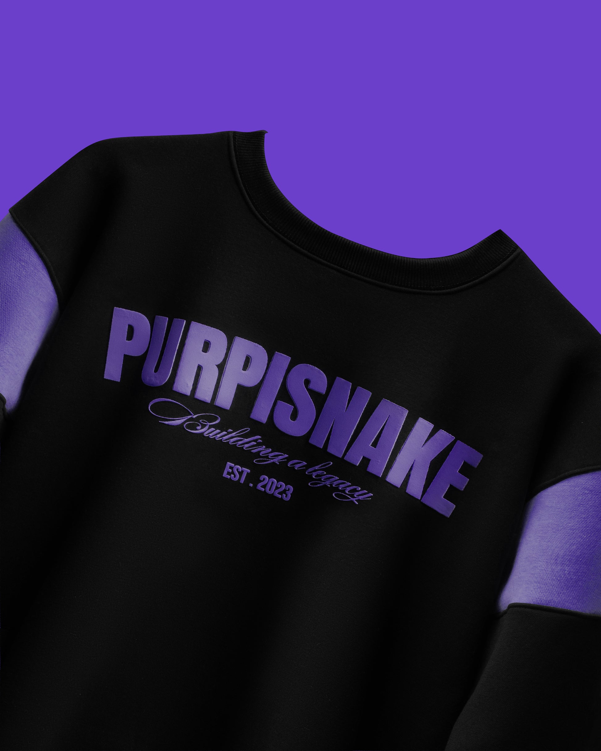 Dark. Sleek. Unapologetically bold. The Purplsnake Midnight Purple & Black Sweatshirt is a statement piece born from the shadows of the night. Blending deep black with rich, mysterious purple, this design channels the energy of midnight — where the rules fade and style takes over.