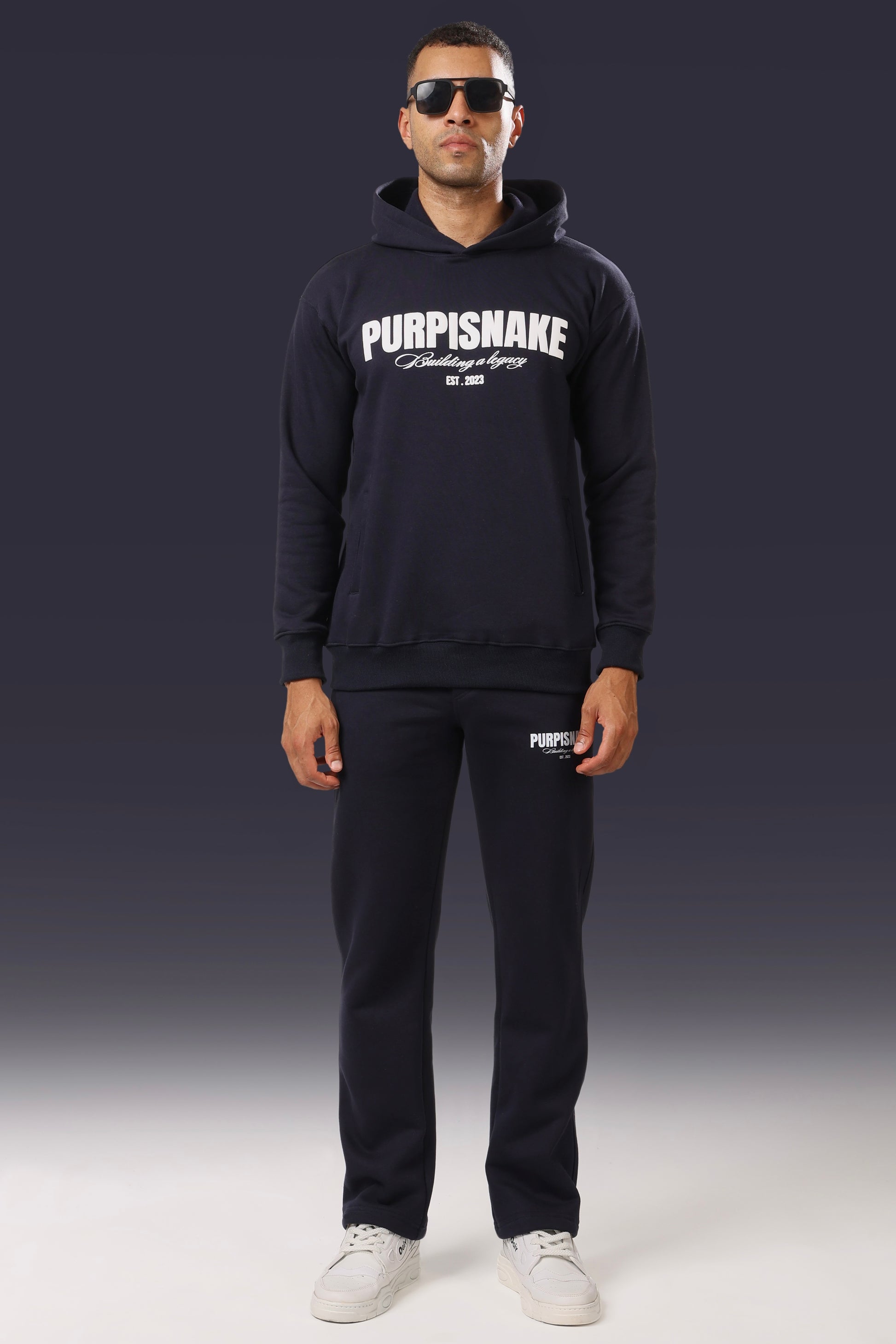 Elevate your casual look with the Purplsnake Navy Coord Set, where comfort meets effortless style. Featuring a deep, rich navy color, this matching set is designed to bring a polished yet relaxed vibe to your wardrobe. The top offers a sleek, flattering fit with a subtle cropped design, while the matching bottoms provide a relaxed silhouette with an adjustable waistband for a perfect, customized fit.