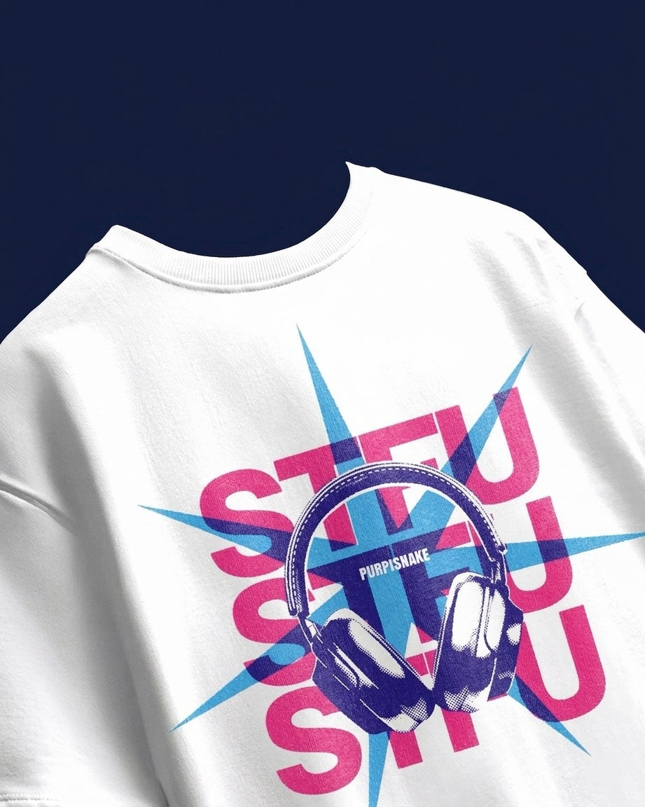 Say less. The STFU White Tee is for those who let their silence — and their fit — do the talking. Bold graphic, clean white base, zero apologies. Oversized drop-shoulder cut for that effortless streetwear edge. Wear it like you mean it."