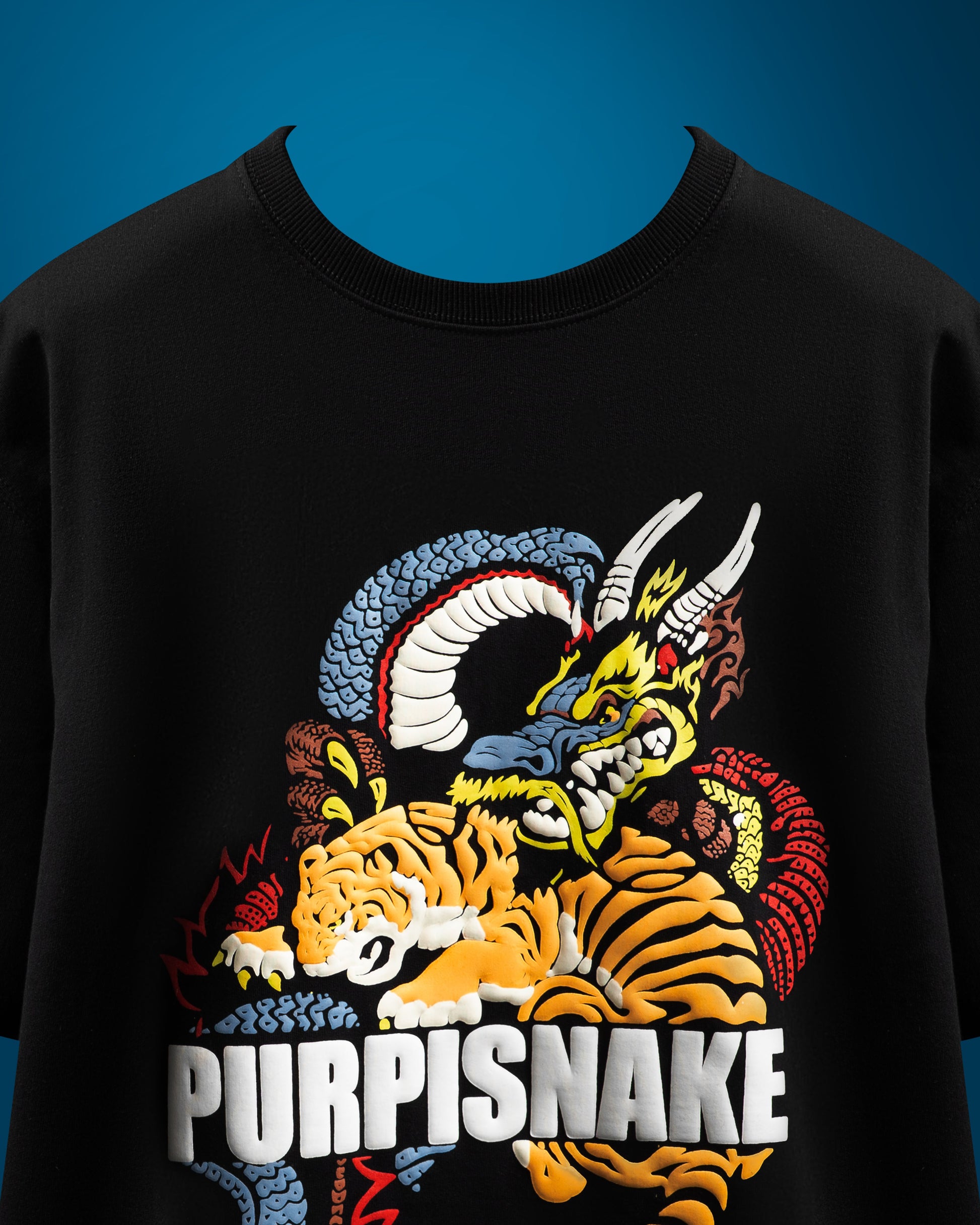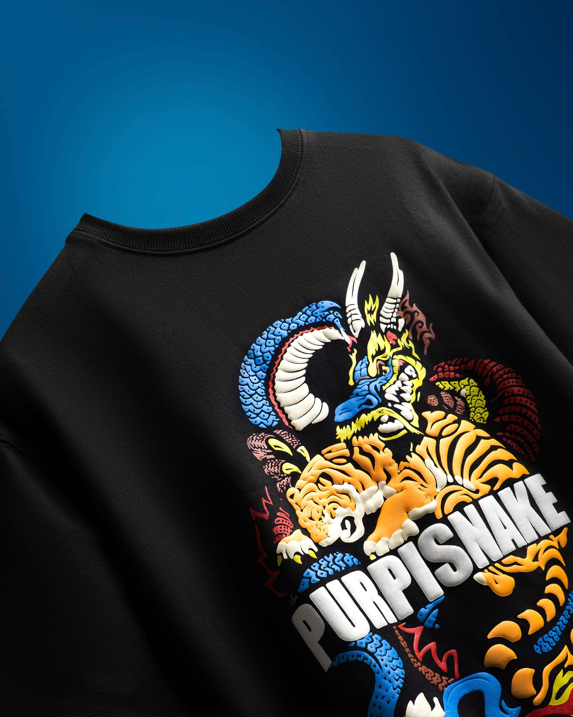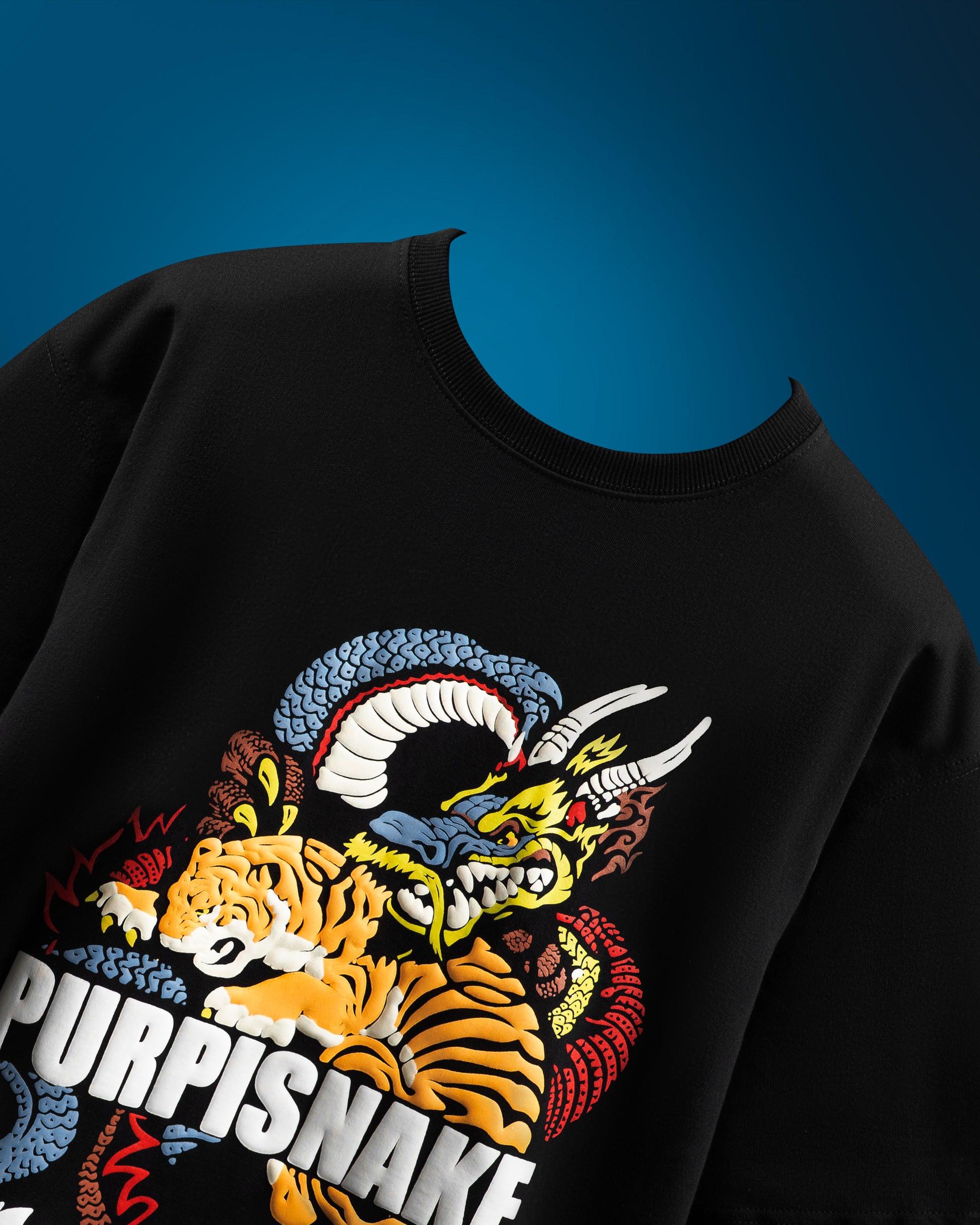 The Dragon Master Black T-Shirt is a premium streetwear piece crafted from high-quality heavyweight cotton, featuring a bold dragon-inspired graphic symbolizing power and mastery. Designed in a sleek black shade with puff or high-density print detailing, it offers an oversized, relaxed fit for a modern urban look. The fabric is soft yet structured, ensuring comfort and durability, while the striking design makes it a standout statement tee perfect for casual or night-out styling.